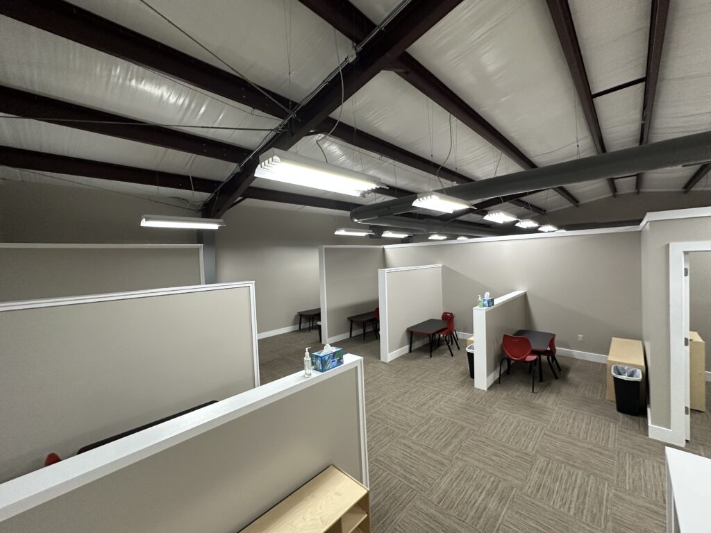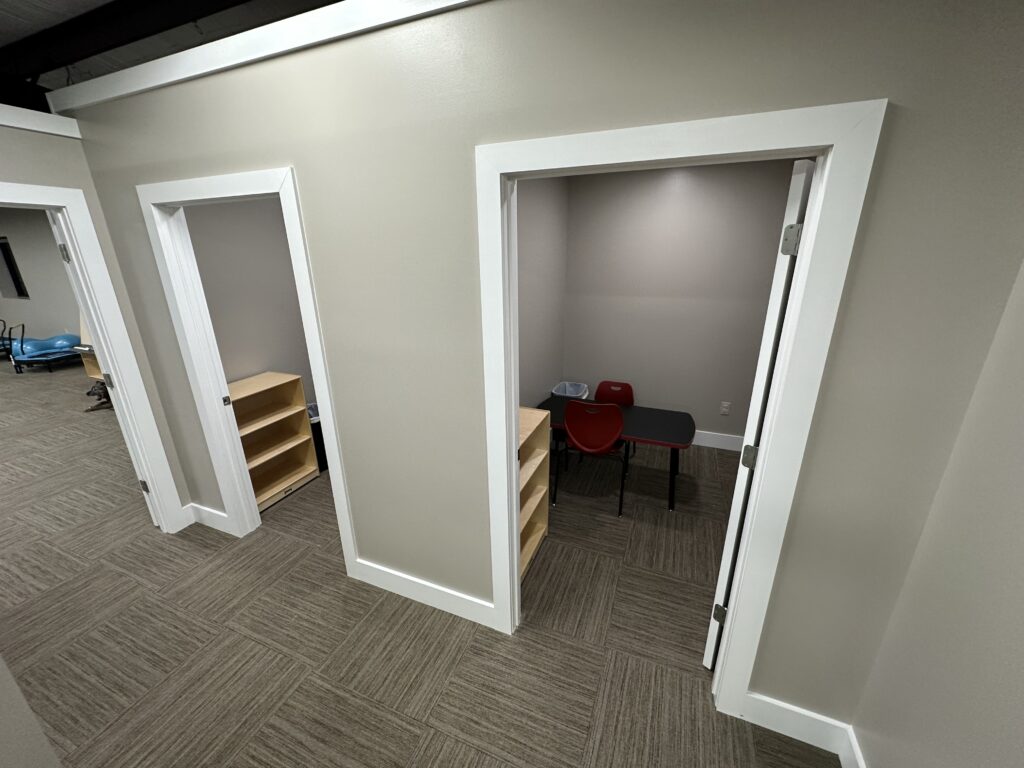 George’s years of experience in the field informed the design of the new space. Over years in the public education setting, George wanted to find a way to prepare students for classrooms. “Having started my career as a classroom based special education teacher, and spending one day a week in public education classrooms during the school year; I fully understand all of the random variables that challenge our learners in a classroom setting. We will be able to technically design and shape classroom readiness skills in a focused, systematic way that will allow them success far beyond our clinic walls. I can’t wait to graduate our learners with a data-backed certificate that says they have acquired the skills to be successful in the public education setting. We’re honored to approach our services in a way that supports and benefits the greater community, our local school districts, and the amazing teachers and classroom aides.”
